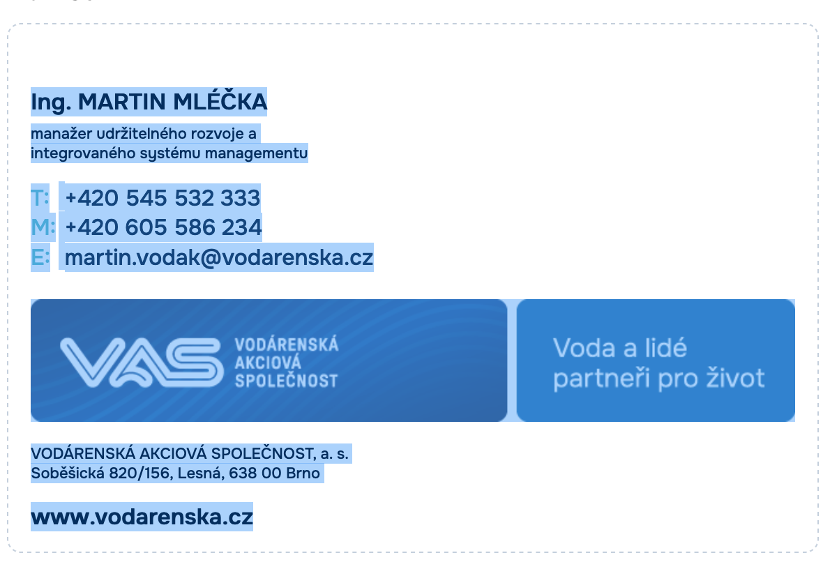Některé e-mailové programy (např. Outlook) mohou po vložení podpisu automaticky podtrhnout e-mailovou adresu nebo webový odkaz, i když to tak nemá být.